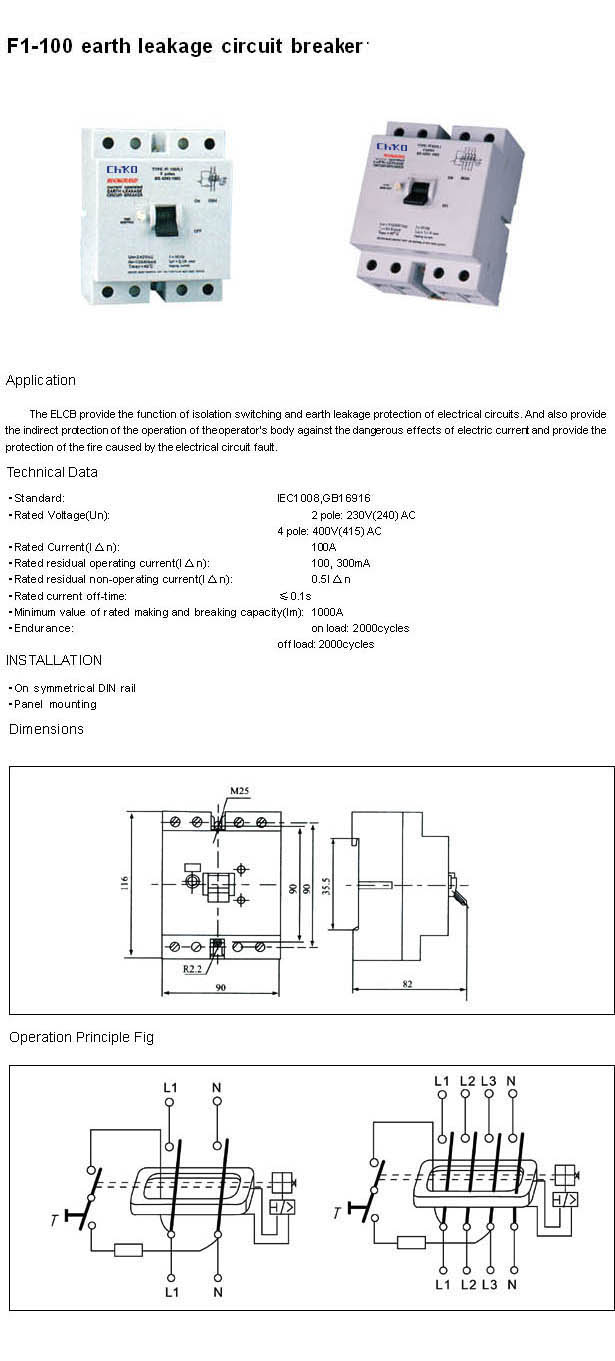 F1-100 Earth Leakage Circuit Breaker