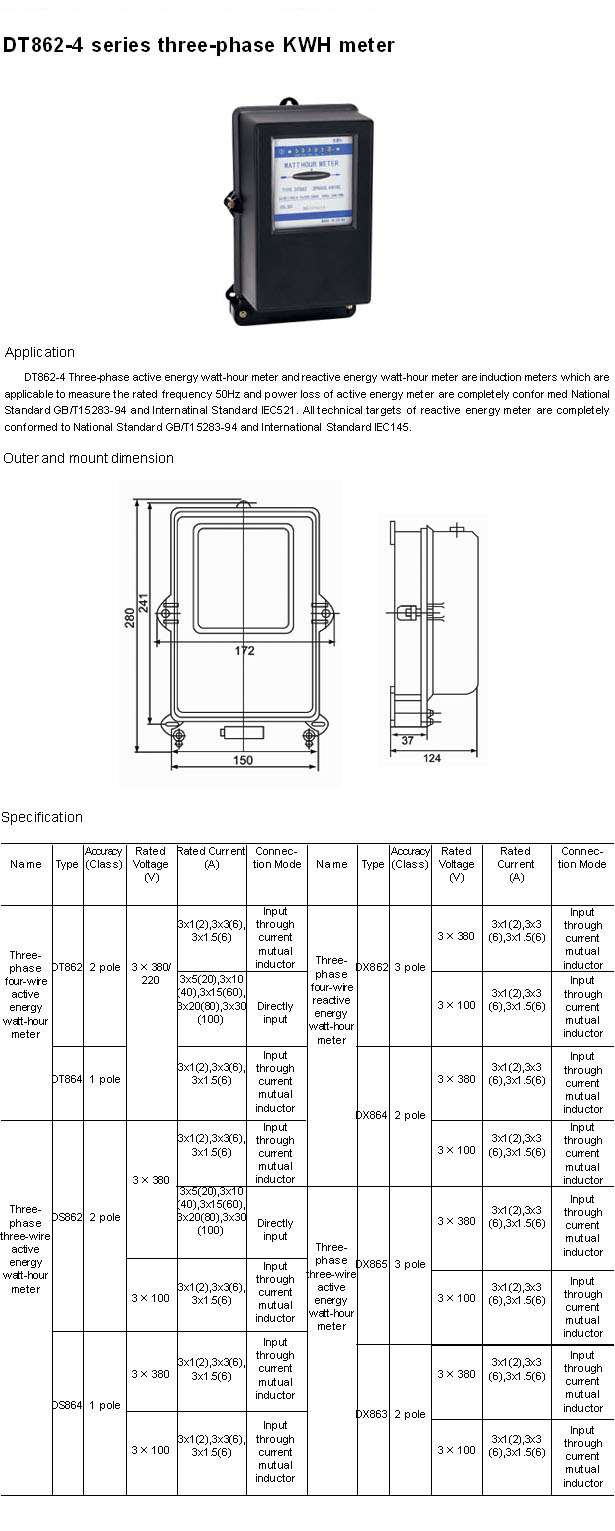 - DT862-4 Series Three-Phase KWH Meter