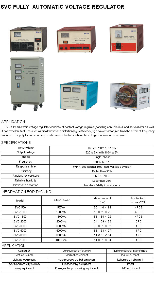- SVC Series Fully Automaitc Voltage Stabilizer